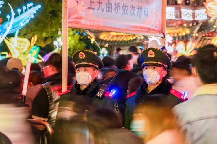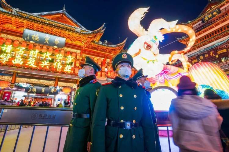 2023年,豫园灯会开启“山海奇豫”,元宵节恰逢周末,赏灯游园人群摩肩接踵、络绎不绝。灯会现场宛若仙境,花灯之下,驻沪武警某部的官兵坚守岗位,“2023年的游客比往年多出不少。”在豫园灯会维护秩序任务中负责九曲桥区域的某中队队长吴安东说道:“豫园商城里,瞬时最高游客量在两万左右,加上园内商户、服务人员,拥堵情况可想而知。”他们坚持分域布势、重点防范、把口制要的行动指导,按照沿线有哨兵、区段有应急、要口有封控、总体有机动、点位有反恐的原则进行部署,全力守护游客开心游园、确保他们的生命财产安全。