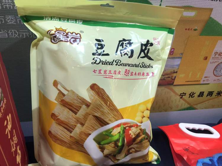 豆腐皮是三明一大特色农产品,特别是清流县,大街小巷到处可以看到卖豆腐皮的店铺和摊位。据了解,清流县有以家庭作坊式生产豆腐皮的家庭356户,还有多家豆腐皮专业合作社、产业化龙头企业,年产豆腐皮6000多吨,产值超1亿元。这里的豆腐皮色泽金黄,富有弹性,一煮就熟、久煮不糊。在上海市农产品公共服务平台“鱼米之乡”上,清流豆腐皮七星岩品牌的800克一袋66.8元,另一个品牌的500克为24元。