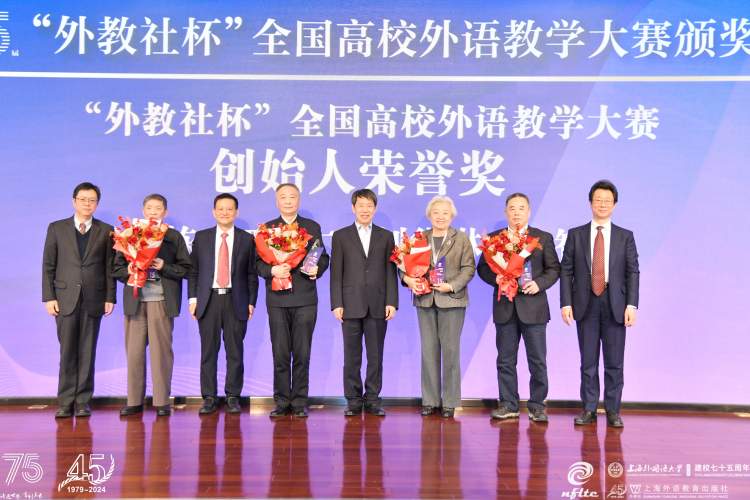 近日,第十五届“外教社杯”全国高校外语教学大赛全国决赛、总决赛颁奖典礼在上海举行。本届大赛为外语类专业组的比赛,以“彰显专业优势 发展学科素养”为宗旨,分为英语专业组、商务英语专业组、翻译专业组和日语专业组四个组别的比赛。从各省市分赛区比赛中脱颖而出的79位优秀外语教师同台竞技,在比赛中展现了良好的育人素养、学科素养、教学素养、信息素养和科研素养,彰显了新时代外语教师为党育人,为国育才的初心与风采。在全国总决赛的说课环节,大赛还引入了人工智能(AI)辅助这一创新形式,鼓励选手利用新技术、探索新模式,依托自身专业知识、教学经验和创新思维,展示AI无法替代的人类智慧。