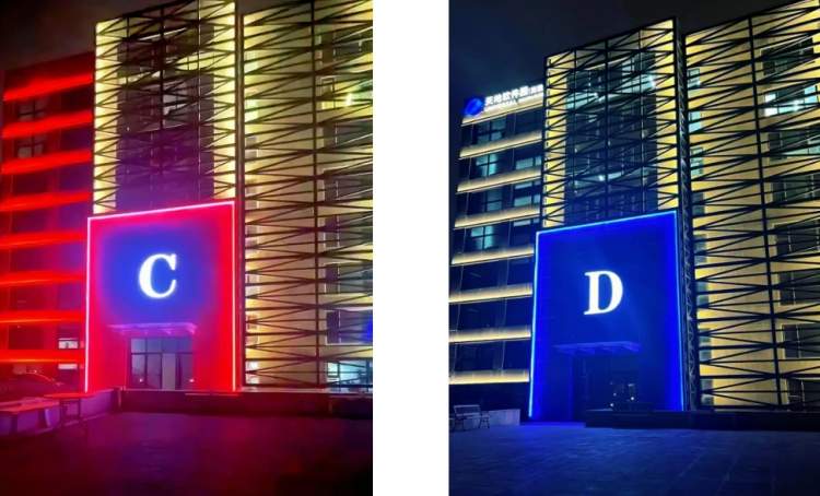 天地软件园(南园)楼宇外墙照明灯光数量少,无法凸显建筑特征,整体大楼未被照亮,在夜景中呈现为黑色几何体。真光路道路对面楼宇有自身泛光照明与楼顶灯箱,与园区形成明显反差。下半年对园区楼宇外立面进行灯光亮化升级改造,提升园区整体形象。目前,天地软件园(南园)外立面灯光亮化工程已完成,将现代照明技术和建筑外立面设计有机结合,营造出夜幕下美轮美奂的城市景观。