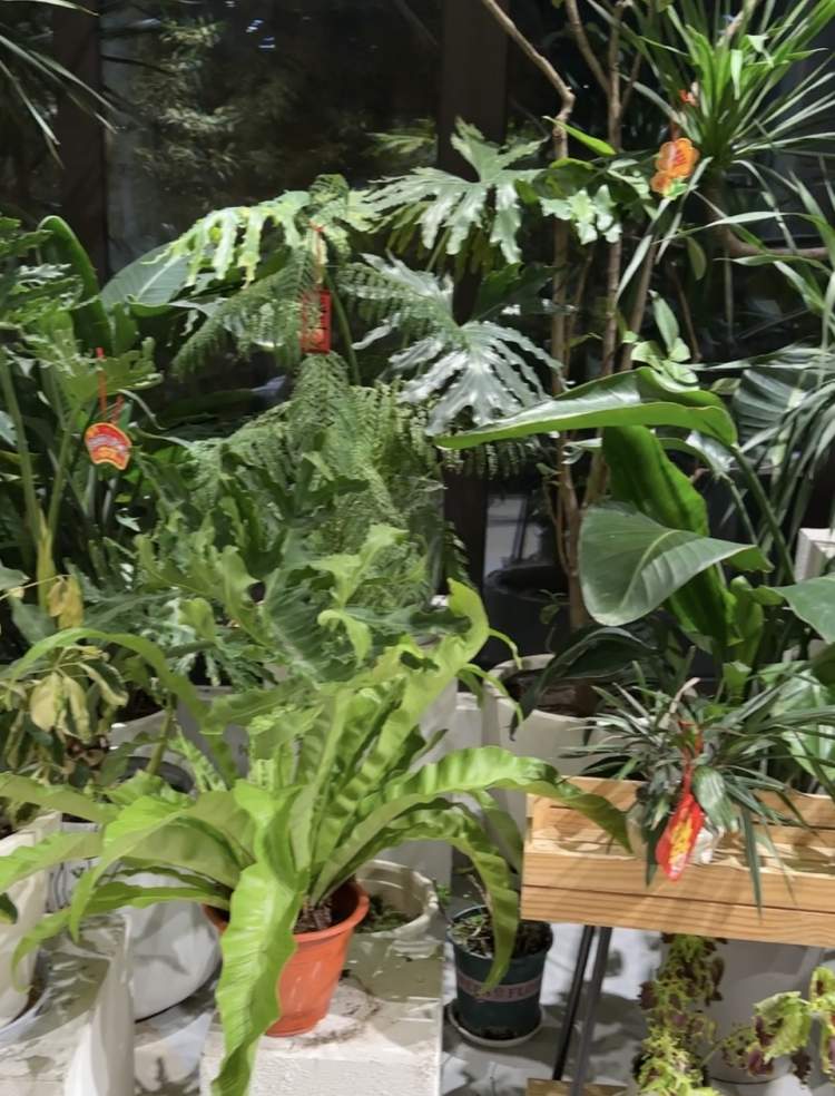 “我们也和绿化部门合作,所以店内布置了很多绿植,营造一个森系的氛围。这些绿植比较适合顾客买回家在家里养护,也是有一部分植物科普的构想在里面。绿植价格也是比较公道,像这种一米高的龙血树大约在200元左右。还有多肉小盆栽、龟背竹也比较受欢迎。”
