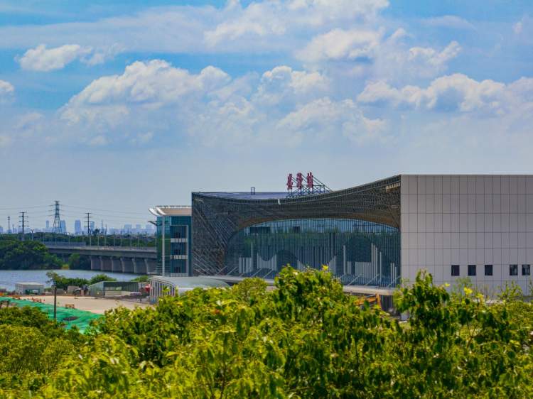 站房外立面以香槟银为主色,以辊涂红作为辅色,整体以“联结”和“六合归芯”为设计理念,联江南水韵、结古今风雅。内部装饰精致典雅,结合苏式园林造景艺法,兼具古典韵味与现代美学于一身。