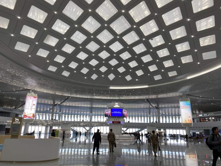 走近苏州南站的候车大厅,随处可以看到“苏式园林”的元素,而整个车站是六边形的结构,是全国首座六边形的枢纽综合体。
