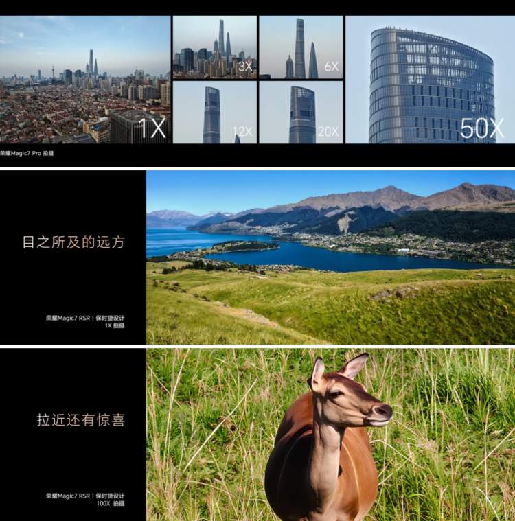 同时,荣耀大王影像升级还带来全新AI超级长焦功能,优化了30x-100x超长望远焦段的拍照清晰度。整个拍照过程会基于部署在云端的124亿参数大模型,通过训练AI学习建筑、自然风光、植物等场景类别的主体拍摄物理特征,让镜头及传感器采集的光学信息进行归纳总结,此时结合不同光照,手机就会输出接近真实效果的纹理、颜色等细节,为了进一步提升用户的长焦使用体验,在联网情况下,用户还可以使用AI超级长焦即拍即得,无需二次进入图库进行云端增强。