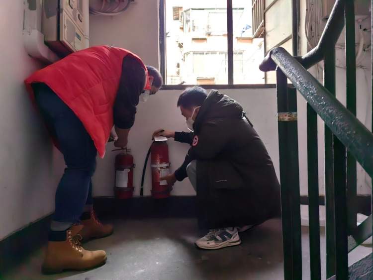 各居民区组织发动社区平安志愿者,联合机关联络员、社区民警、物业等开展安全检查,重点对小区消防灭火设备是否完好、消防通道是否畅通、是否存在飞线充电、楼道充电、电池入户充电等现象进行排查,发现问题立即整改,确保小区安全形势稳定。