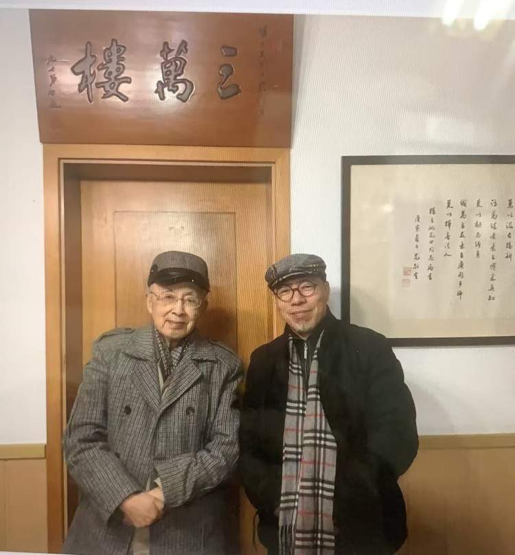 ▲管继平拜访姚昆田先生(左1),并在其家中“三万楼”合影,大约拍摄于2018年