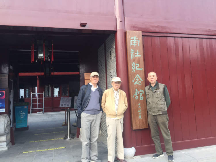 ▲姚昆遗与兄长姚昆田(中间)陪同南社元老蔡哲夫外孙王迟先生(右1)参观南社纪念馆