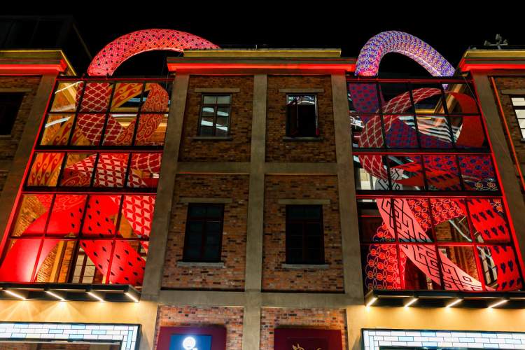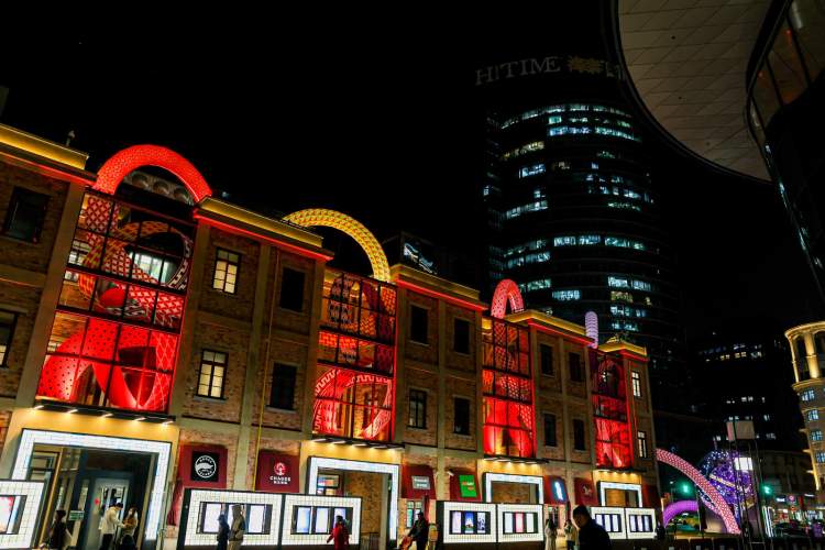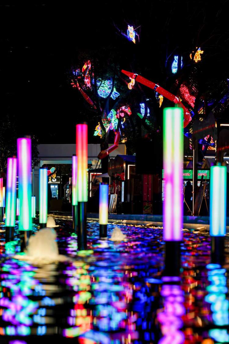 在设计语言上,传统新春元素被转化为现代、潮流的视觉语言,融合了节庆的喜悦与现代艺术的质感,为观众带来对蛇年新春的美好期许。展览整体氛围时尚欢快,展现了多元文化的交汇,也契合了今潮8弄与滨港商业中心“娱文旅商”的多元商业定位。灯光与艺术的交织,为游客打造出一场别具趣味的灯光艺术盛会。