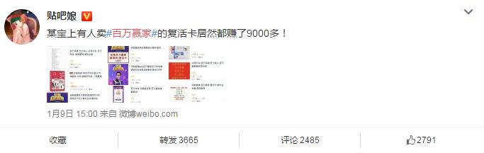 最有意思的是,已有聪明的小伙伴发现了其中的商机,以1元1个的价格出售复活卡(邀请码),1小时178个订单,有人已经赚了9千多!卖《百万赢家》的商家是最多的,卖《芝士超人》的则几乎没有。看看微博和应用市场里持续刷新的邀请码,有没有觉得发财致富很容易?