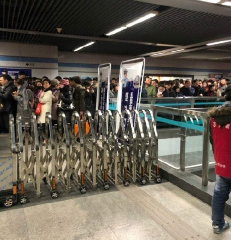 今天上午7点过后,轨交9号线部分区段出现故障,列车限速,造成乘客积压。