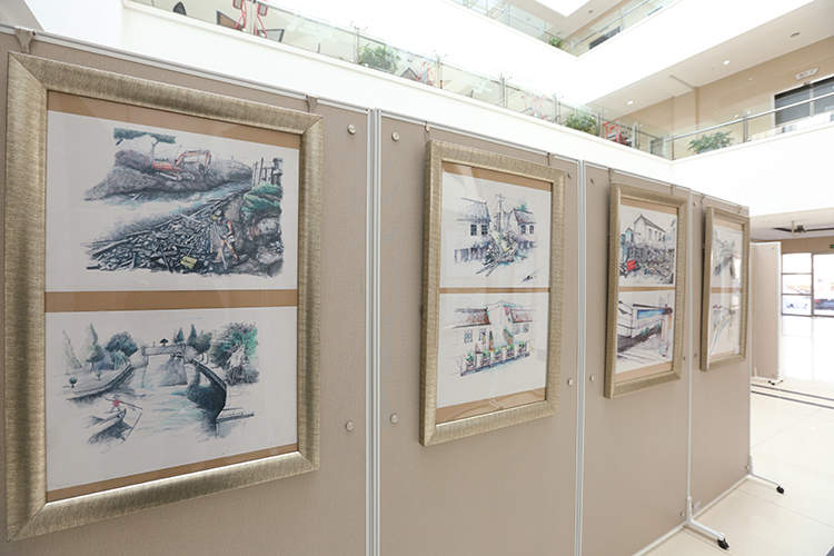 仅初期的线稿,就更改了三次才确定下最终的场景。上色阶段更是困难重重,既要还原现实,又要保证画面的艺术效果,部分作品更是在十多次失败后才完成。完成后再为速写作品配以相应的文字描述,使参观者们能更清晰地了解每一幅速写作品的背后故事。