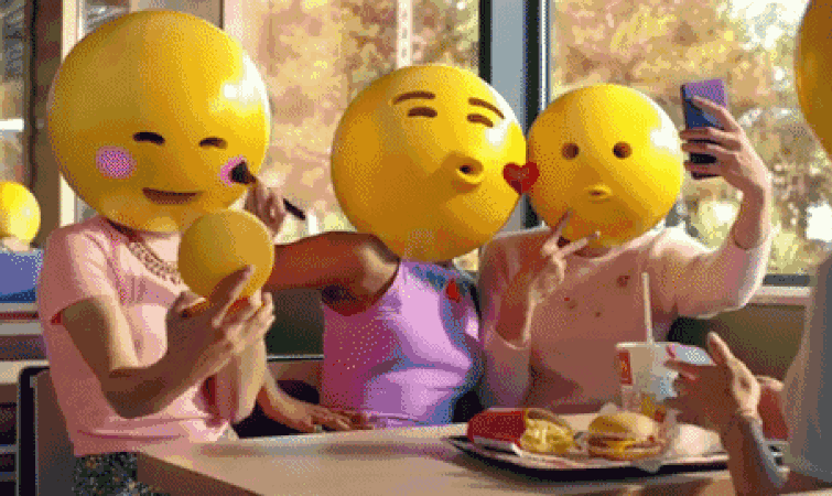 翻译过来意思就是,“我们化个妆一起出来拍个照,轮流P个图然后发朋友圈!”