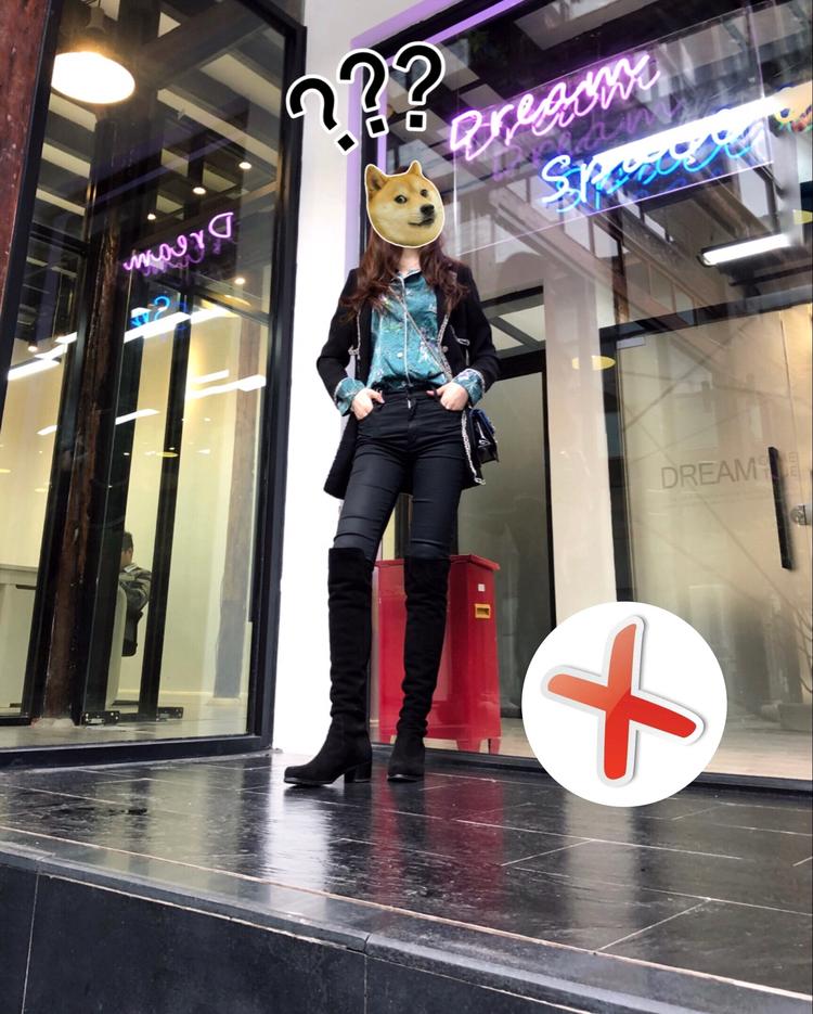 我站在同一个位置,男盆友一样的角度拍摄但咔出来完全不一样腿长的照片。秘诀:要记得把腿放在靠近照片底部的位置,如果距离照片底部过高就会显腿短。↓