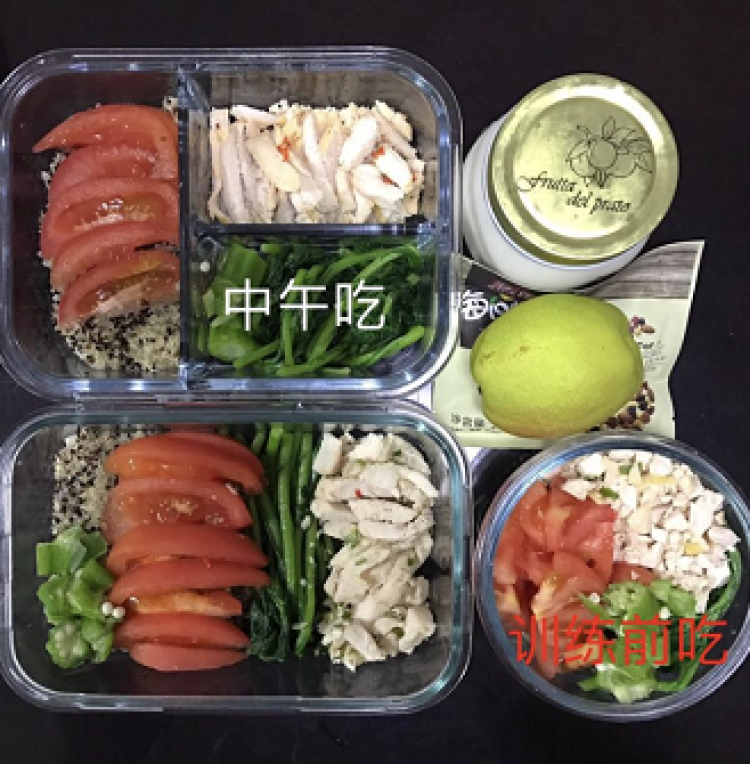 钟教练给周到君分享了一个正在健身的小伙伴(女,160cm,57kg)的食谱,目前她就照着这样吃,再配合一定量的训练进行健身,大家可以参考一下哦~