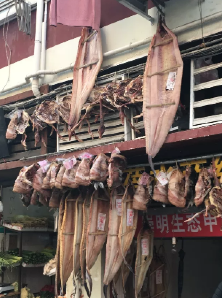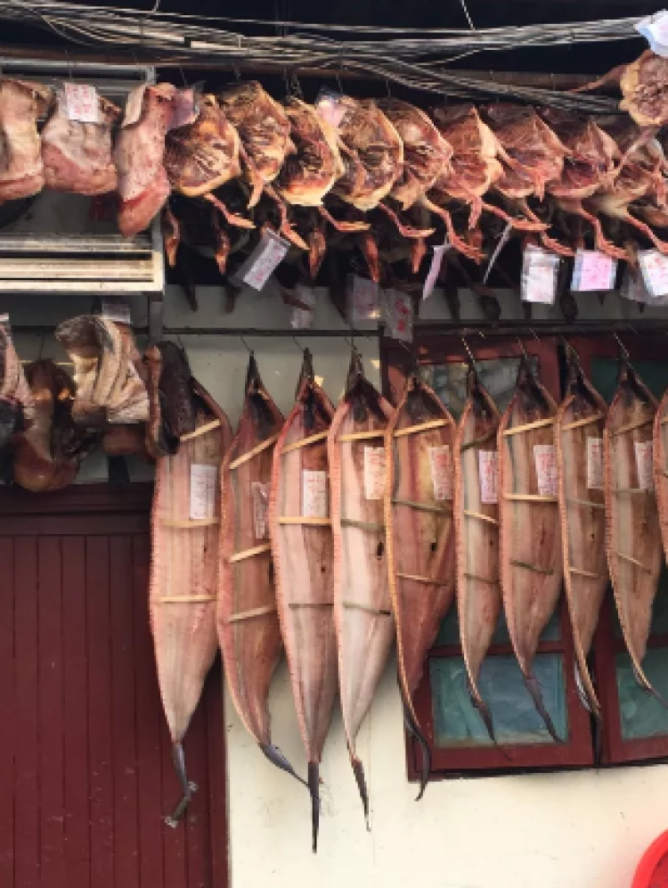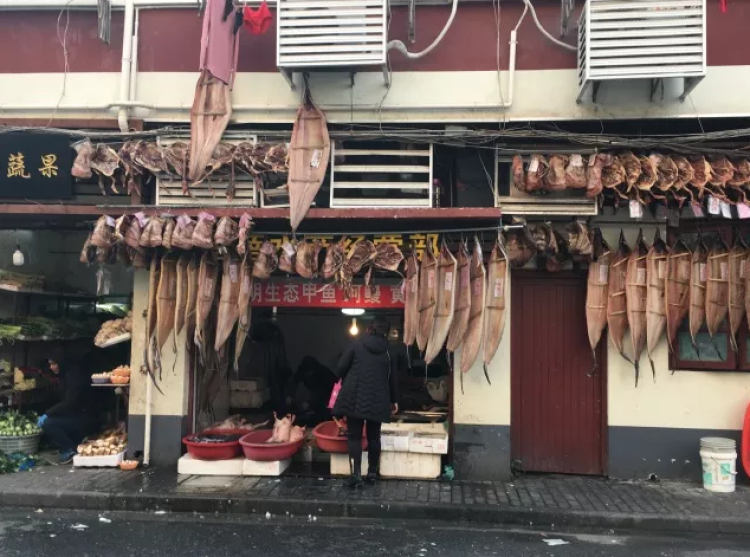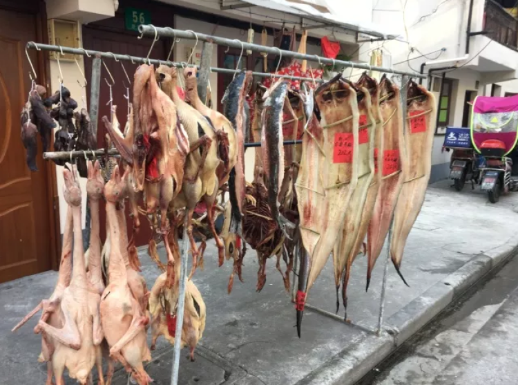 腌制的鸡鸭、青鱼、鳗鱼挂满了整个大门