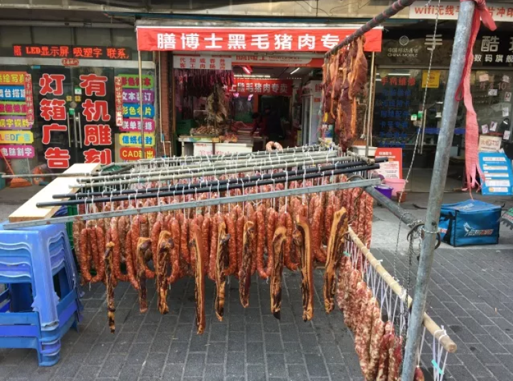 无独有偶,老城厢里的腊肉店让人目不暇接