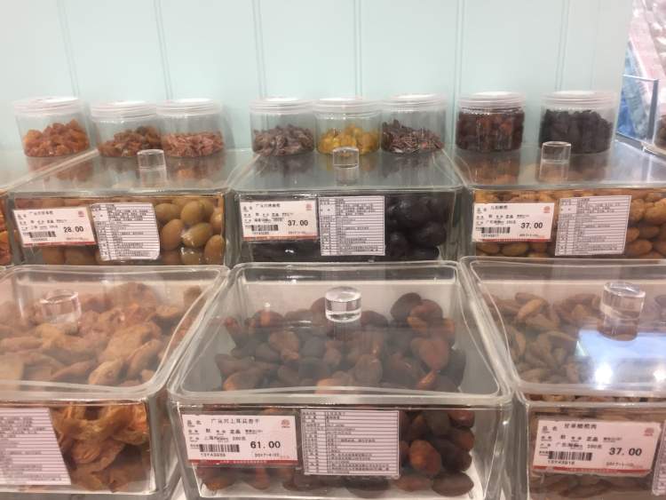 在第一食品商店里有些专柜上,称重销售的蜜饯、糖果等零食,计价单位并非大众以为的500克一称。