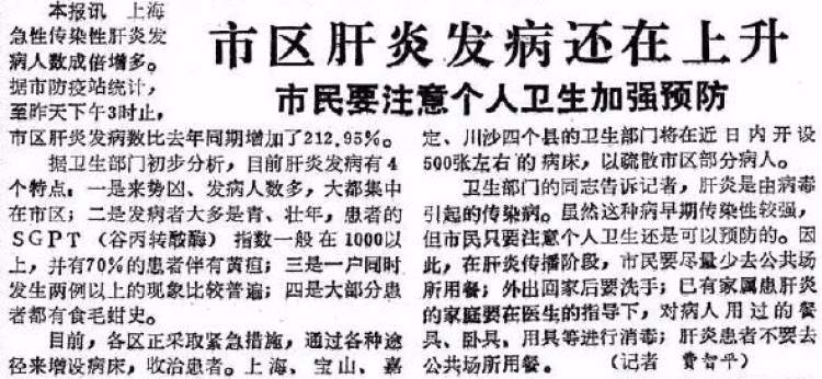 ■1988年2月3日《解放日报》报道称,肝炎发病人数还在上升。