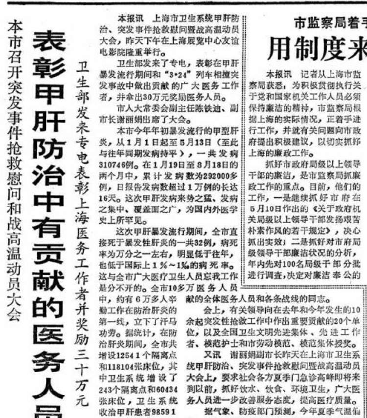 ■1988年6月《解放日报》报道,卫生部拿出30万奖励医务人员。