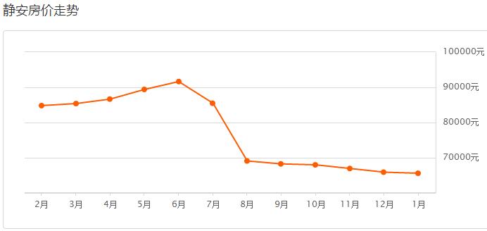 静安1月二手房均价65593元/m²静安12月二手房均价65907元/m²环比上月下跌0.48% ↓,同比去年同期下跌22.96% ↓