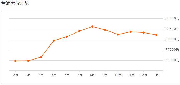 黄浦1月二手房均价81116元/m²黄浦12月二手房均价81658元/m²环比上月下跌0.66% ↓,同比去年同期上涨8.35% ↑