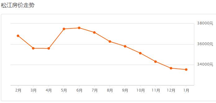 松江1月二手房均价33534元/m²松江12月二手房均价33665元/m²环比上月下跌0.39% ↓,同比去年同期下跌7.84% ↓