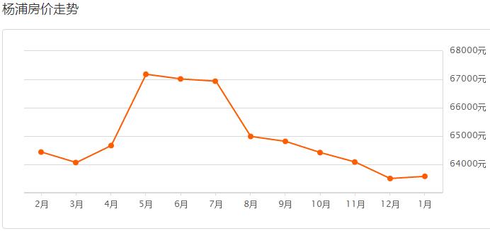 杨浦1月二手房均价63579元/m²杨浦12月二手房均价63502元/m²环比上月上涨0.12% ↑,同比去年同期下跌0.47% ↓