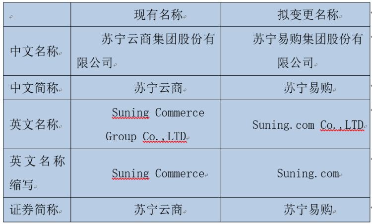 1月14日晚间,苏宁云商发布公告称,计划将“苏宁易购”这一苏宁智慧零售的品牌名称升级为公司名称,以便“统一企业公司名称与渠道品牌名称,突出智慧零售主业,进一步提高品牌知名度及美誉度。”变更后,该公司名称将变为“苏宁易购集团股份有限公司”,证券简称将变为“苏宁易购”,证券代码不变。