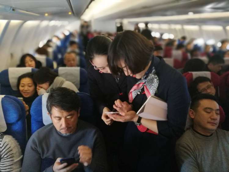 从1月18日起,在东航和海航的承运航班上,乘客在飞机上可全程使用手机了,前提是必须开启飞行模式。这对于很多乘客而言无疑是个大好消息,而如果飞机上还提供WiFi服务,那整个旅途肯定会大不一样。18日上午,记者就登上了上海飞往北京的东航航班,体验了一把飞机上使用手机以及飞机上使用空中WiFi的“快感”。