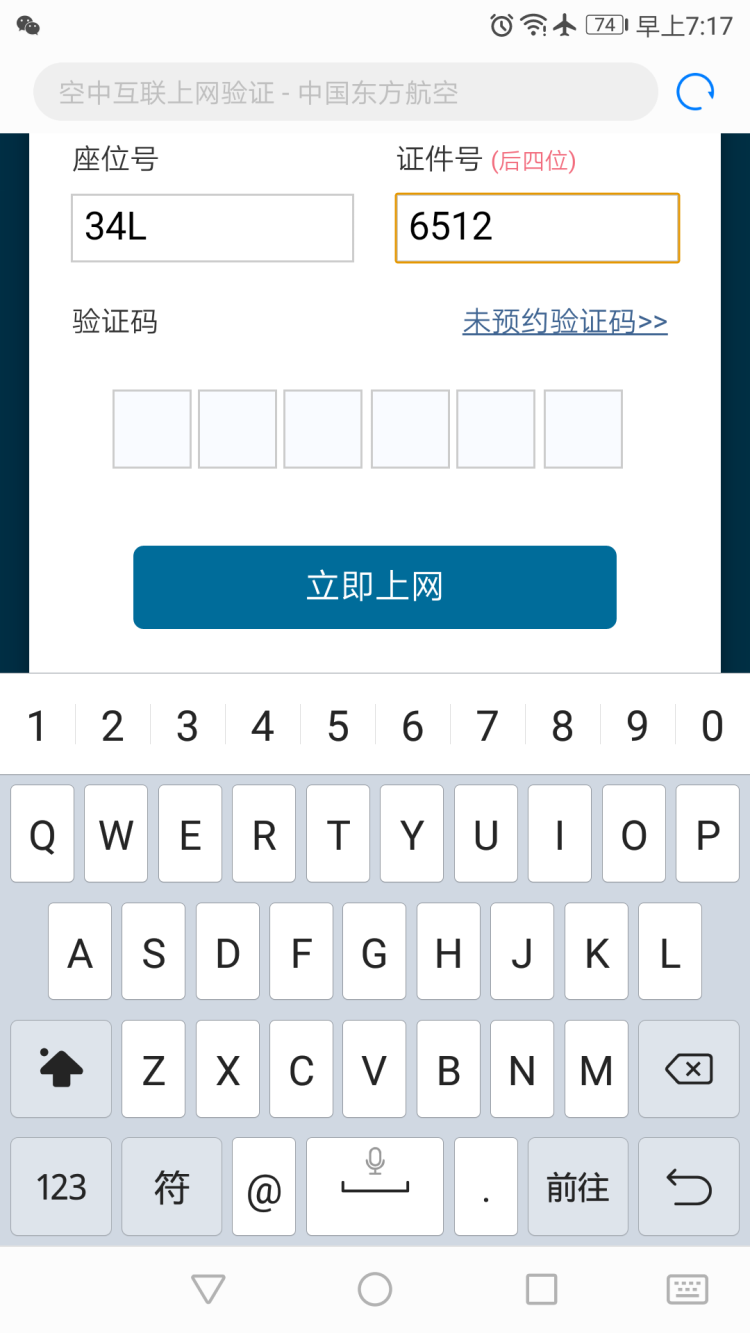 在飞机上升到一定高度后,空中WiFi信号会自动开启,连接该WiFi并跳转到浏览器,进入“空中互联网上网验证”页面,输入座位号和身份证号后四位,记者很快就成功连上了空中WiFi,整个过程与一般的公共WiFi连接方式相差无几。而除了连接过程,空中WiFi提供的网速又怎样呢?