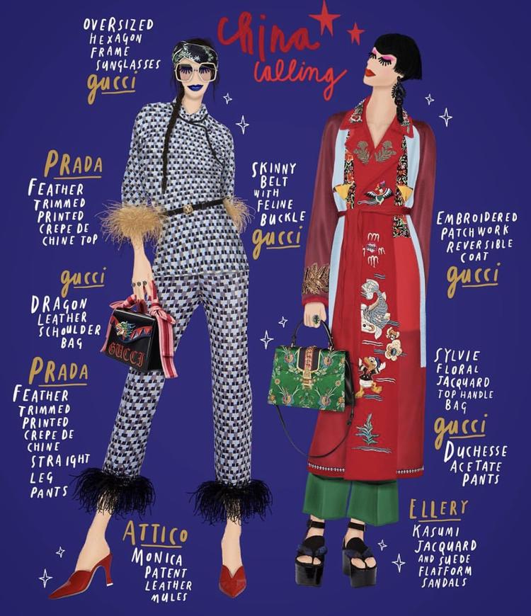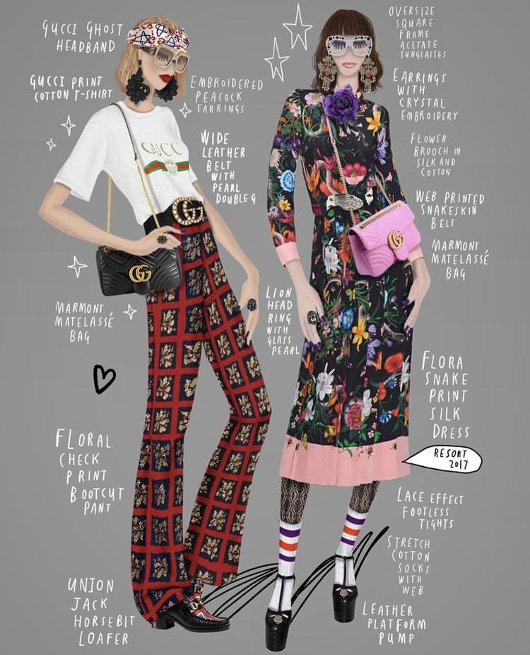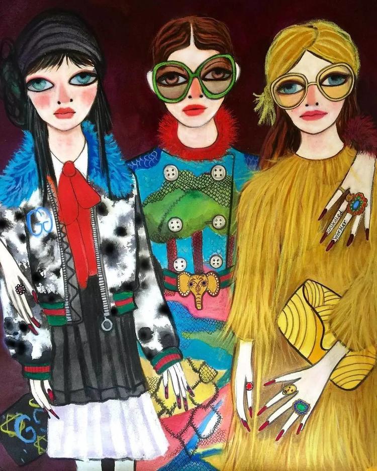 ▲Helen为Gucci 2017春夏米兰时装周创作的插画
