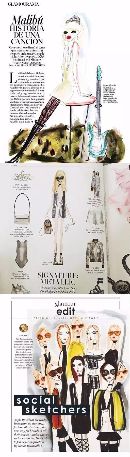 Blair还受到《时尚芭莎》、《名利场》等杂志邀约做内页插画 ↓