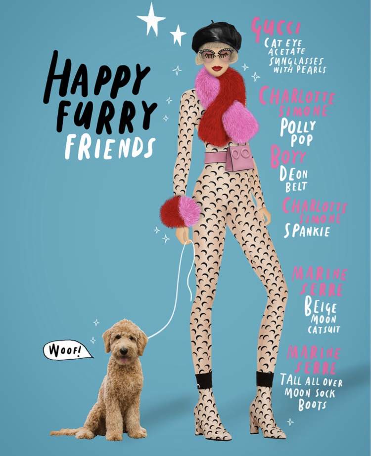 ▲Topshop的爱心人造皮草+Anya Hindmarch的毛毛眼睛手包+Charlotte Simone的毛毛围巾