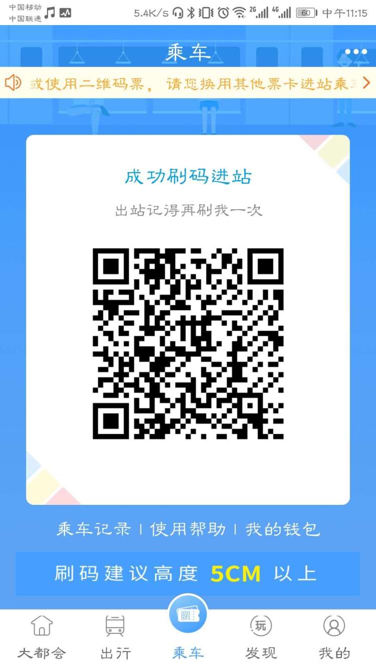 确认开通之后,就可以刷二维码坐地铁啦!