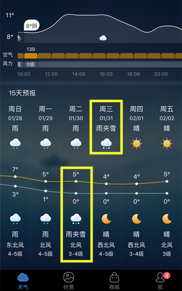 赶紧截图发给同事,大家鸡冻地赶紧打开自己的天气软件,果然都有雪❄!