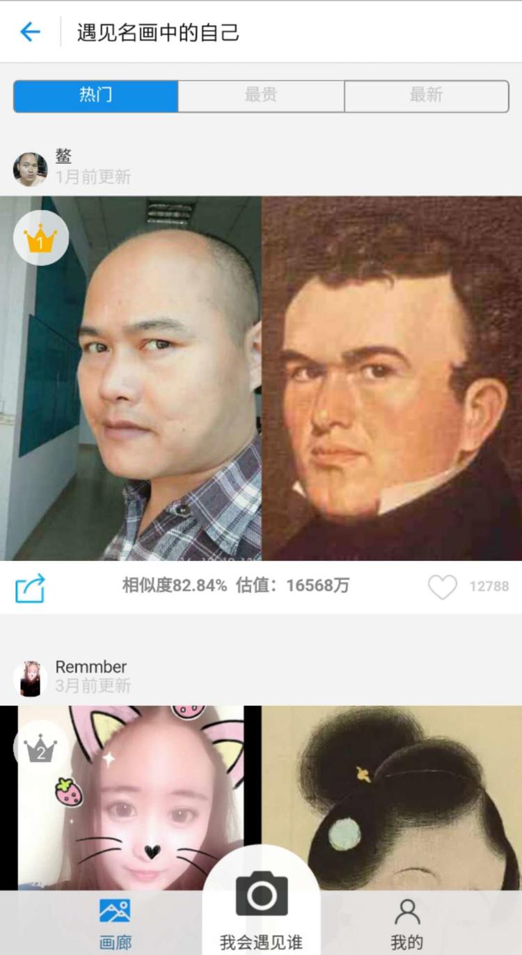 操作很简单,点击“我会遇见谁”,选择存在手机里的照片,自动匹配相似度最高的肖像画。
