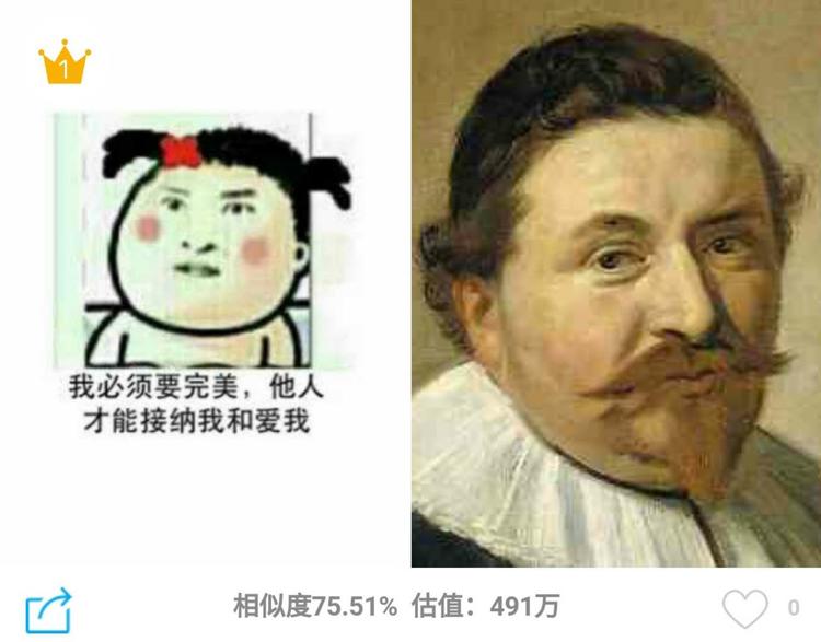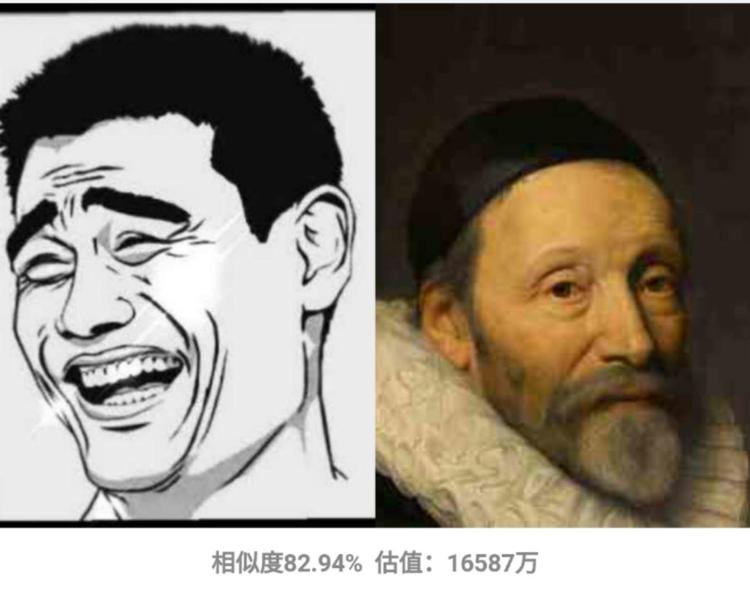 不过,所有丧病的图都能被有趣的人用表情包治愈。有网友脑洞大开,把“亚洲表情包三巨头”姚明的表情上传了上来。这款经典表情匹配到了荷兰黄金时代画家米希斯·詹斯·凡·米尔伏的画作《Johannes Wttenbogaert肖像》,相似度高达82.94%。这位朋友,橘子送给你,整个园子的橘子树都送给你!