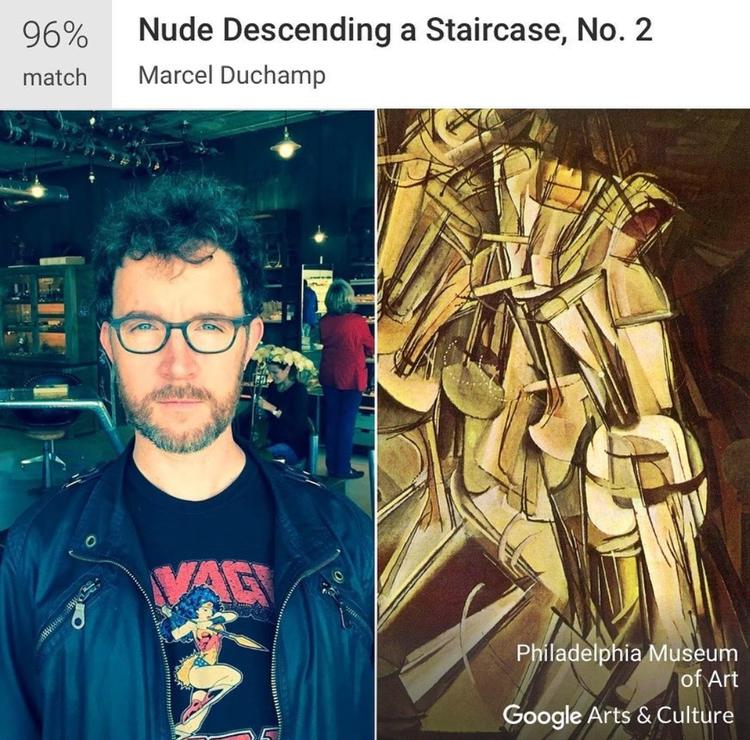 这位网友也是非常神奇,竟然匹配到了一幅抽象画,匹配率还高达96%。周到君做了一番小小的研究,《Nude Descending a Staircase, No.2》是Marcel Duchamp于1912年创作的作品,是现代最经典的画作之一。