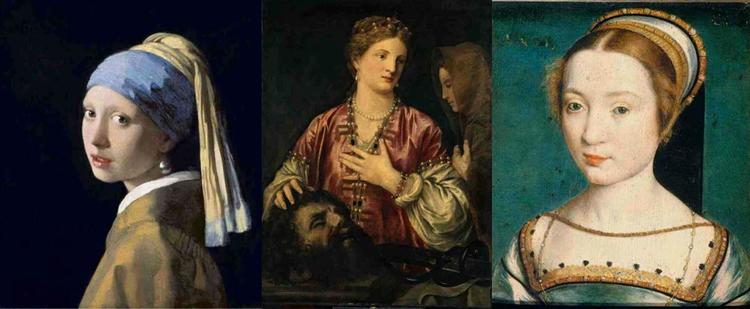 ■与周到君相似度最高的三幅肖像,从左到右分别是:《带珍珠耳环的少女》、《朱迪斯与赫罗弗尼斯的头颅》、《克莱德·法兰西肖像》。