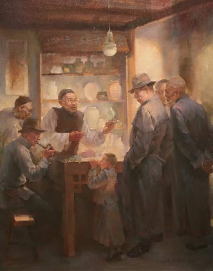现任教于上海应用技术大学艺术与设计学院绘画系的殷正洲,十分注重上海历史文脉发掘,他以朴素的写实语言,形象地再现了那已经久远的民国影像,从那些故去了的人与事的描绘中让我们感受记忆的温暖。他注重那些底层人生活叙事,试图从那些市井生活中寻找一种人性的真实。他的画面追求光影的变幻,神情的刻画常常通过体态语言去呈现,画面人物造型及空间布局表现生动。