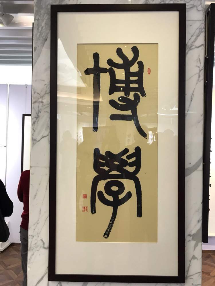 展览上,最吸引眼球的当属海外留学生的书法作品。正是在杨建文教授的指点下,这些此前完全不熟中文的年轻老外纷纷爱上了中国书法,并以练习书法为乐,书法成为其生活中的一部分。