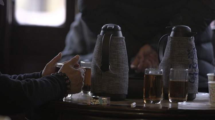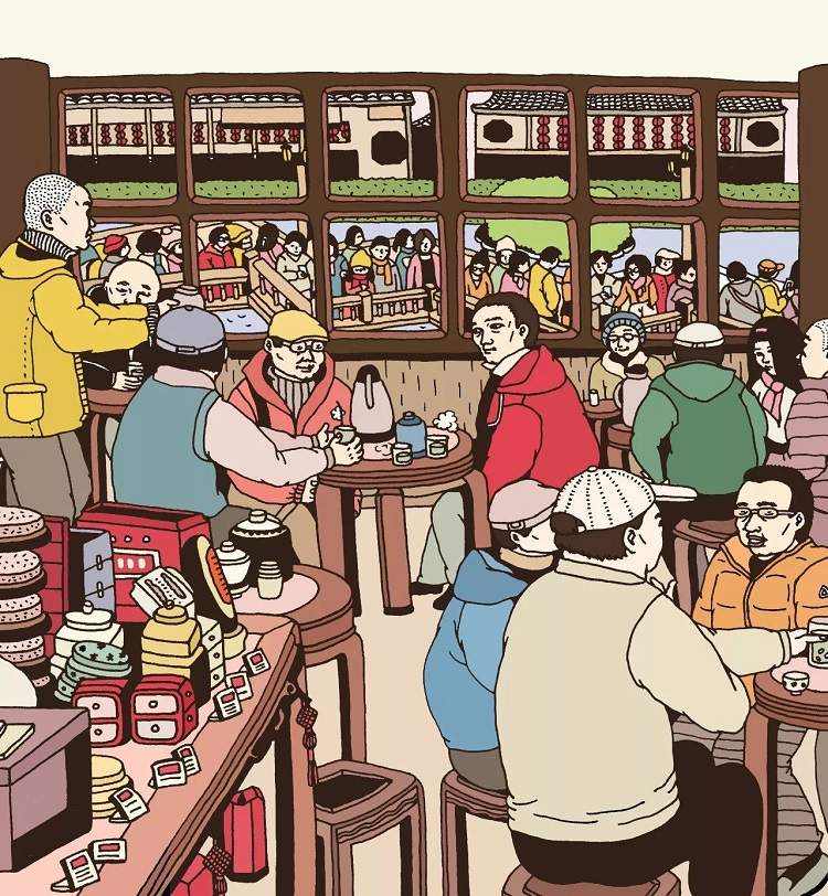 到了1972年,意大利导演安东尼奥尼在纪录片《中国》里,拍下了茶香氤氲中,茶客倚着窗格喝茶聊天的画面。