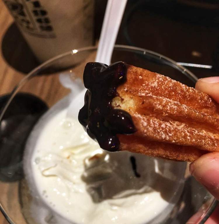 区别于普通油条,西班牙油条中混合鸡蛋和黄油,外面还被撒上了少许肉桂糖粉,吃起来香香酥酥的。也许是鸡蛋吸油的原因,吃几口之后周到君觉得有些腻,自带的巧克力酱也没用多少。店员推荐了一种搭配,是蘸北海道冰淇淋吃西班牙油条,口感果然清爽很多~