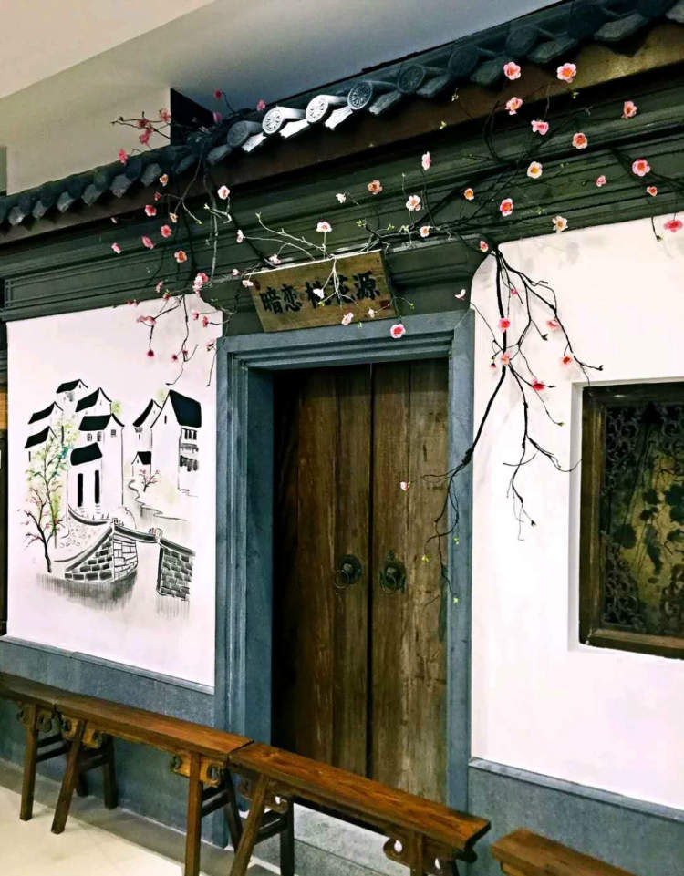 粉墙黛瓦、画檐雕窗,探出墙头的几枝桃花,在一片现代炫目的商铺中间,这里显得格外宁静悠远。