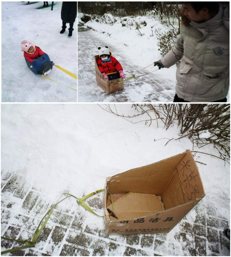 小时候,每到冬天,周到君的爸爸都会用几块木板、纸箱和绳子造一个滑雪板给我玩,爸爸在前面拖着跑,我和小胖友坐上去666,别提多带劲了,虽然有点折腾屁股。