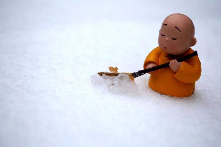 嫌积雪少,也没事儿,马路牙子上,草地上,树丛里各来一点,哪里有雪,铲哪里,聚拢好,压压实。