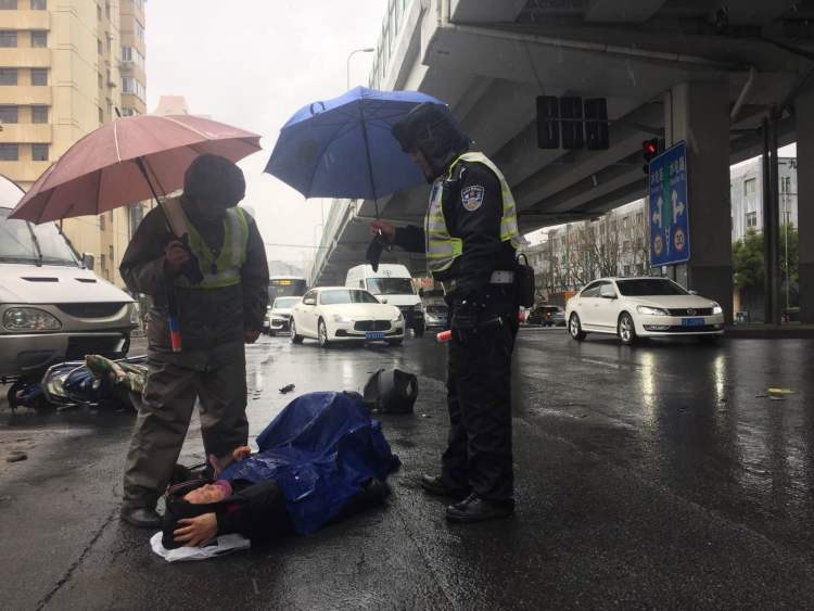 暖心!交警为滑倒女子撑伞20分钟遮风挡雪 2018-1-25 今天上午9点20分,中山北一路广中路路口,一辆依维柯小客车与非机动车发生碰擦事故,造成非机动车车主倒地。虹口交警曹锡钧和辅警立即到场。 由于天气寒冷,年近50岁的女车主倒地后突发腰痛,无法动弹。 “当时天还在下雪,但是她没办法起身,我们赶紧去附近借伞。”现场执勤民警将借来的雨伞为倒地女子撑起,另一位辅警前往附近邮局又借来雨披和雨伞,“下雪天路面又湿又冰,我们把雨披垫在她身下。”期间,虹口交警曹锡钧将装满物品的塑料袋垫在女子头部,一边为其撑伞,一边安抚倒地女子。 直至上午9时45分,倒地女子被医务人员送往医院救治。 赞一个 (0)
