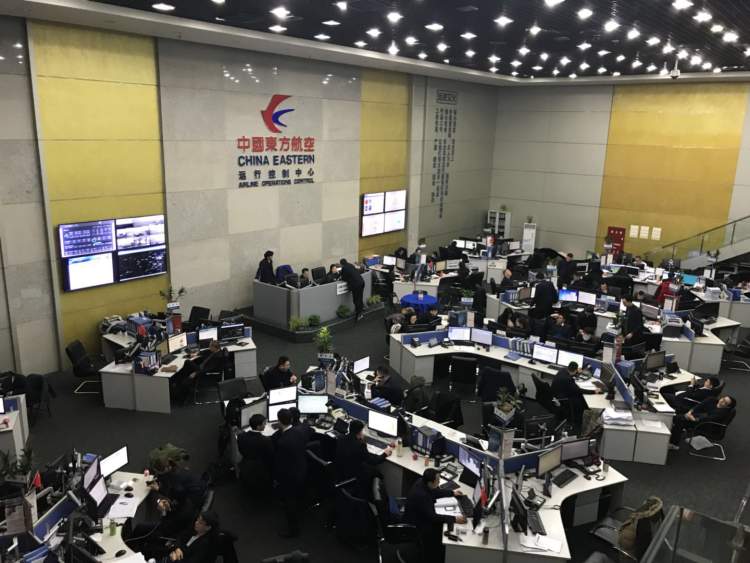 ■此时的东航运行控制中心紧张而有序