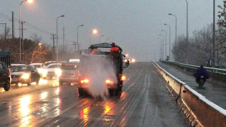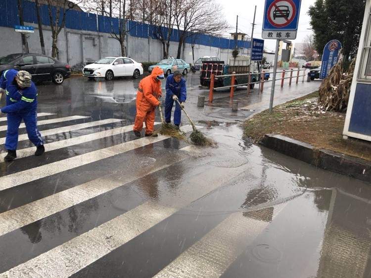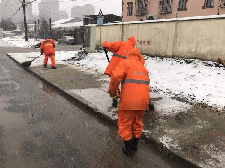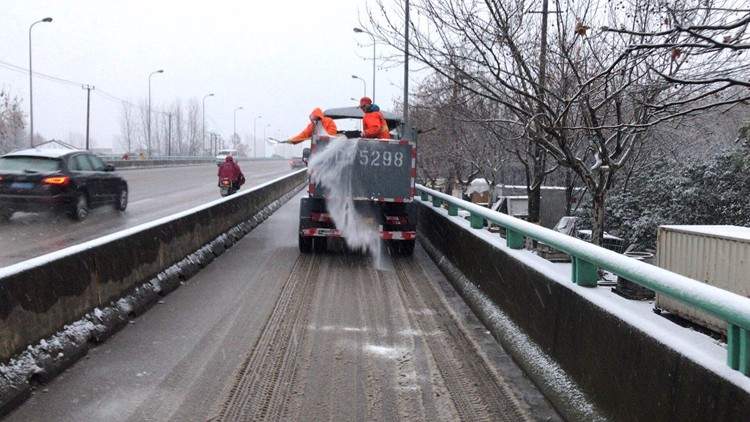 除了绿化工人们,数万环卫工人更是彻夜忙碌。傍晚4点半开始,负责宝山大场镇区域道路保洁的上海大场环境卫生服务有限公司见雪情极可能影响道路通行,出动100多人,3辆作业车,对锦秋路沿线的桥梁开始撒盐作业。此外,还人工清除道路积水、修复道路坑洼,防治积水结冰后影响道路安全通行。大场环境卫生服务有限公司业务科科长张玉晨介绍,今天,他们还会视雪情况,及时采取撒盐、清除道路积水、积冰、积雪,上述作业可能要重复多次。