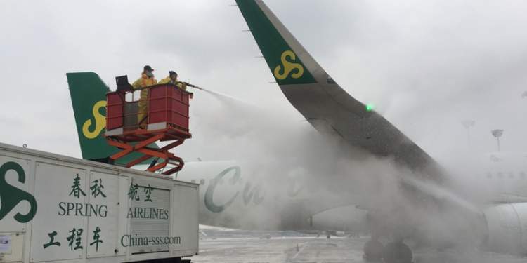 图说:春秋航空说气温太低,也为现场除冰霜加大了难度。